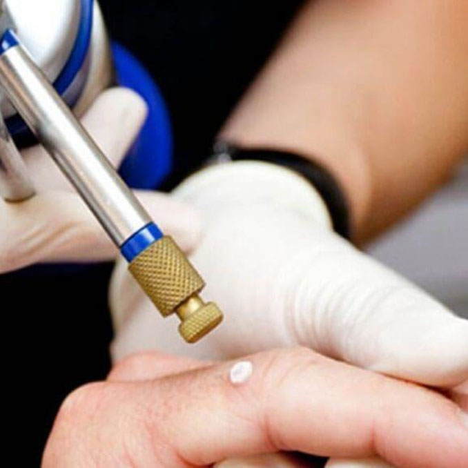 O procedimento é feito em consultório, após limpeza local, utilizando agulhas finas para minimizar o desconforto. O número de aplicações varia conforme o tipo e a resposta da lesão — podendo ser repetido em intervalos de semanas.