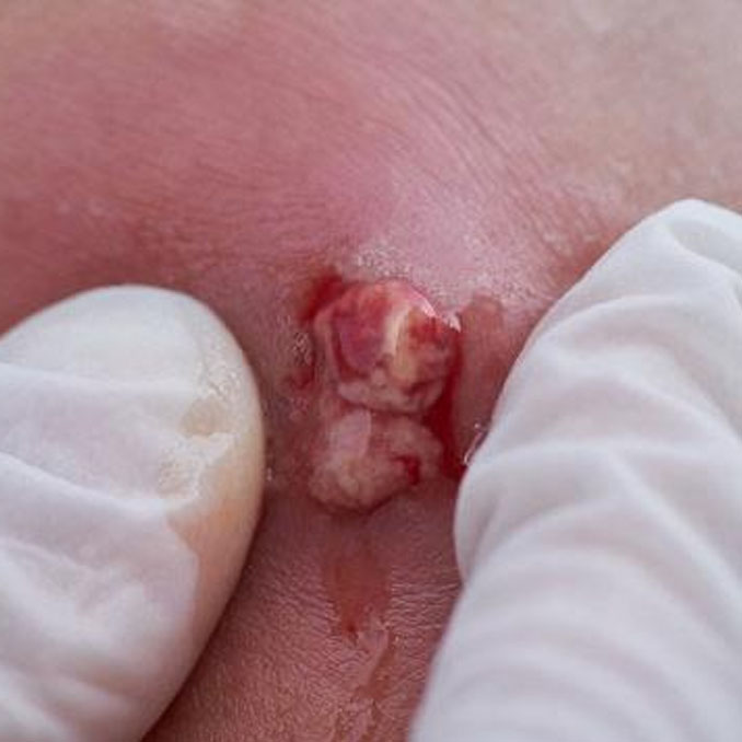 O procedimento é feito em consultório, sob anestesia local ou não, com assepsia da área afetada.